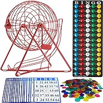 Amazon Com Mr Chips 11 Inch Tall Professional Bingo Set With Steel Bingo Cage Everlasting 7 8 Bingo Balls 18 Bingo Cards And 300 Bingo Chips Lucky Red Toys Games